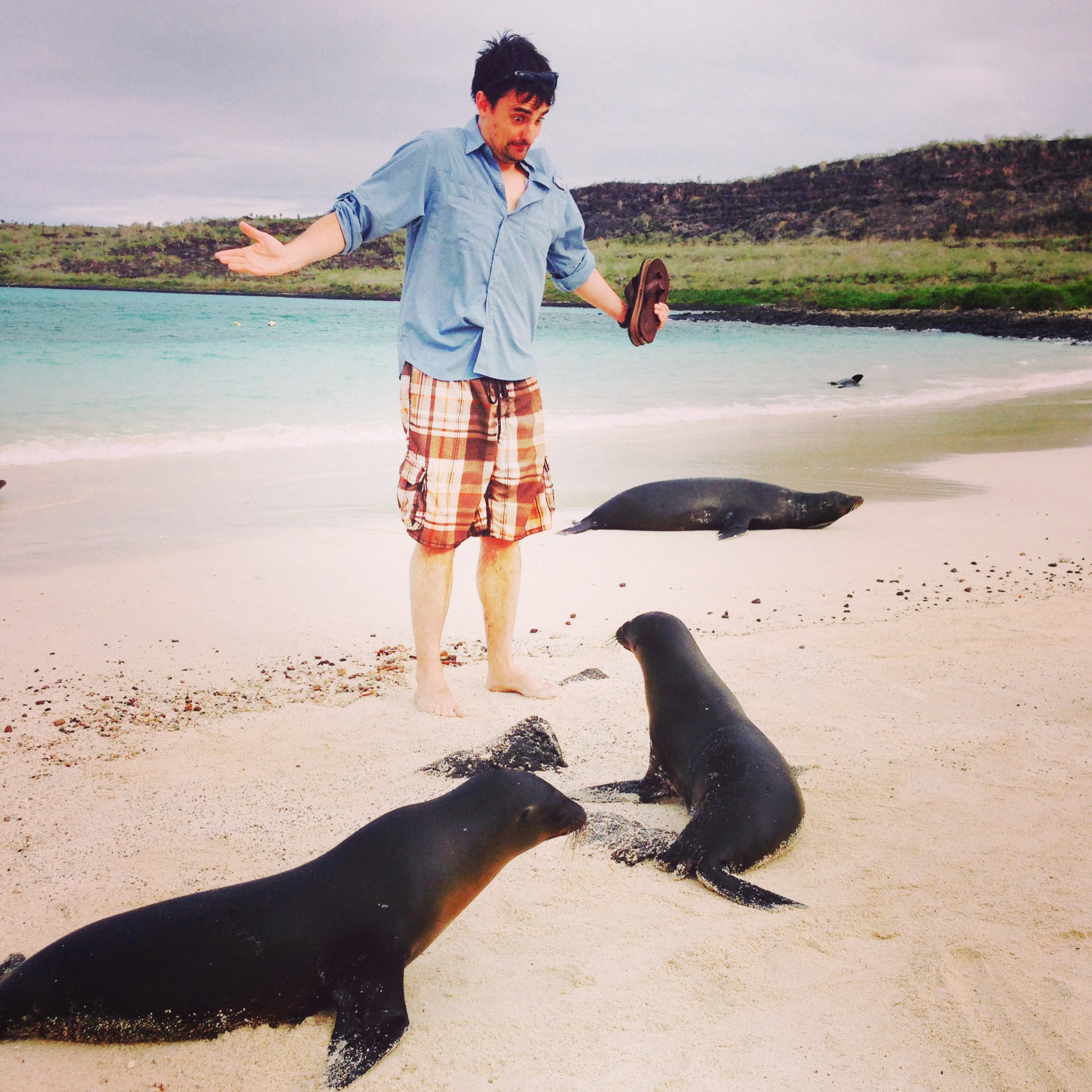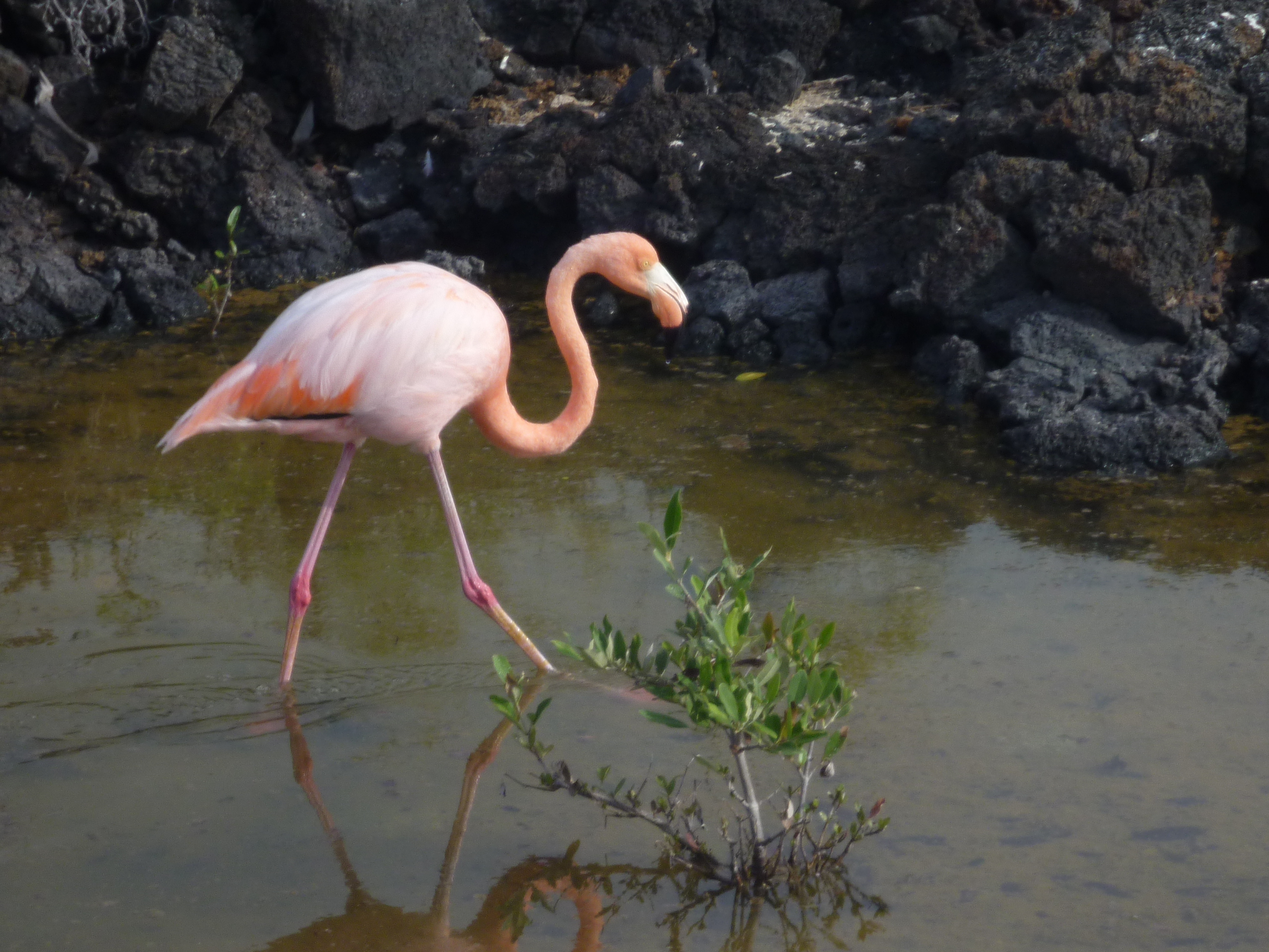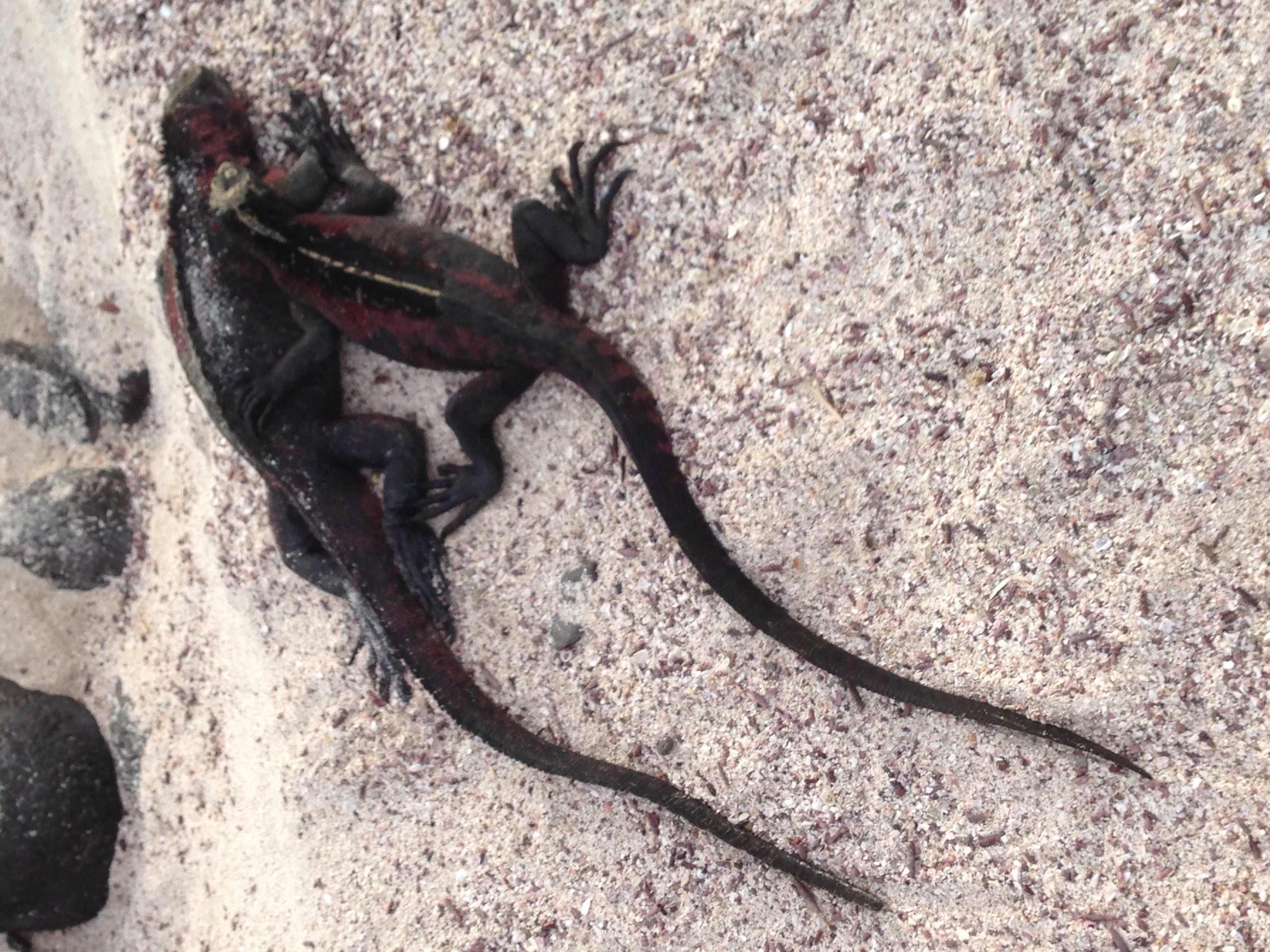 We set out quickly after we got on the boat and saw a ton if really cool wildlife on the first afternoon. We stopped at a white sandy beach where we snorkeled from shore, and saw flamingos, marine iguanas, blue footed boobies, and Frigate birds, to name only a few. The weather is pretty hot and we have quite a lot if free time to lounge around on the boat and relax as we motor from one island to another.
